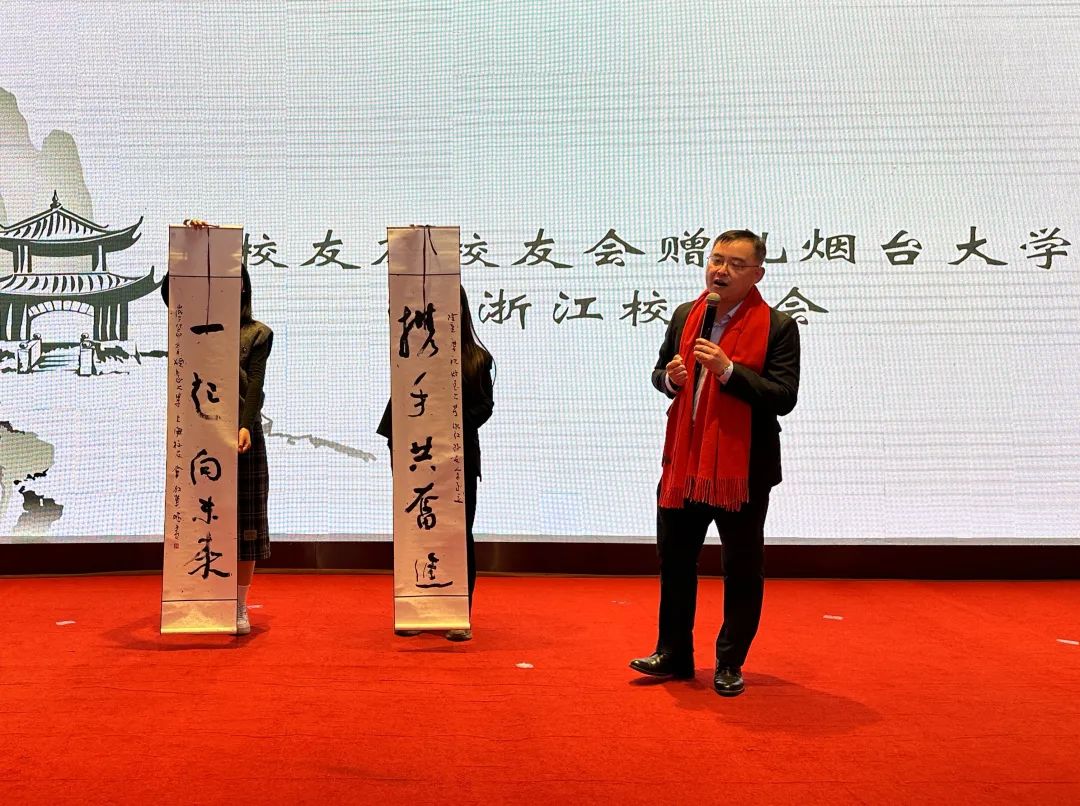 会上,文学与新闻传播学院87级校友、浙江校友会顾问李宗圣致辞并向校友会赠送题词“最忆烟大,梦圆浙江”,表达了全体在浙烟大人的共同梦想和美好祝愿。