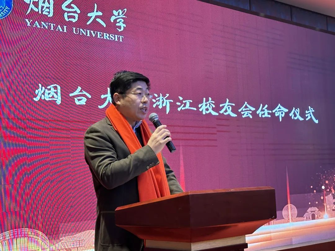 张殿臣发表了热情洋溢的讲话。他代表学校师生员工以及广大海内外校友向浙江校友会的成立表示热烈祝贺,对与会校友致以诚挚问候,对校友会筹备组成员表达了衷心感谢,并向与会嘉宾和校友介绍了学校的基本情况、近年来取得的成绩以及yth20611游艇会网站校友会注册成立的相关情况。他表示,母校是校友永远的家园,校友和母校有割不断的血脉亲情。浙江校友会的成立,使学校与校友、校友与校友间的沟通更加畅通。他强调,浙江校友会全体成员要凝心聚力把校友会建设成为校友共诉情怀的家园、资源共享的桥梁和互助成长的平台,秉承“守信、求实、好学、力行”的校训,发扬“海纳百川、敢为人先”的烟大精神,立足母校、服务校友、奉献社会。同时,张殿臣向广大校友提出四点期望:一是主动联络交流,推动母校与校友共赢发展;二是珍惜母校形象,自觉维护和传播母校声誉,与母校发展荣辱与共;三是铭记校训精神,努力奋斗拼搏,为母校在社会上赢得更多荣光;四是凝聚校友资源,为母校发展不断贡献力量。最后,他诚挚邀请校友常回家看看,期待大家在四十周年校庆时返回母校,畅叙情谊,共襄盛典。