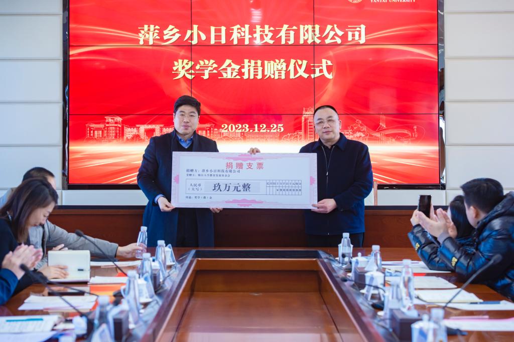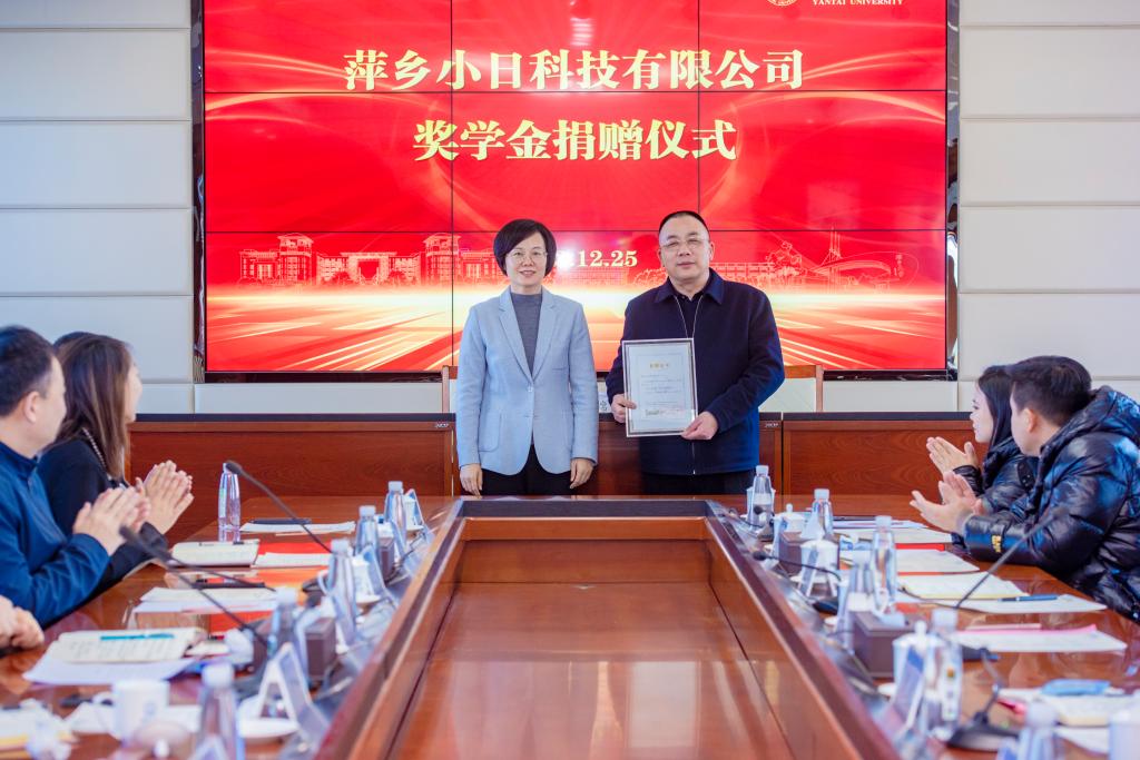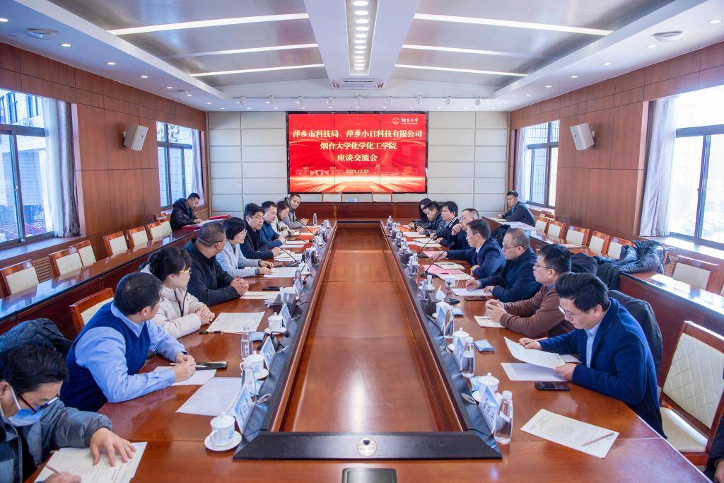 【本站讯】校企合作辐射全国,产教融合再谱新篇,yth20611游艇会网站科技成果在萍乡“落地生根”。12月25日上午,萍乡市科技局局长周斌、萍乡小日科技有限公司董事长王树望一行来校,签署战略合作协议开展科技成果转化并进行奖学金捐赠。党委常委、副校长冯素玲出席,合作发展处(服务烟台办公室)、科技处、化学化工学院相关负责人和教师参加座谈。合作发展处(服务烟台办公室)处长孙旭涛主持。