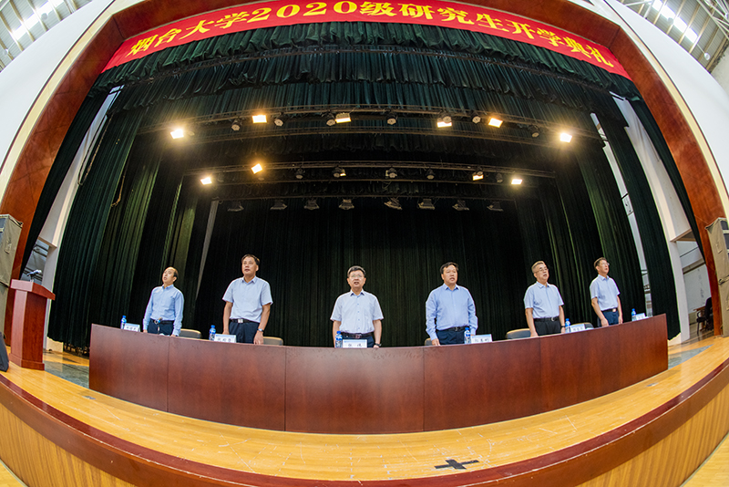 典礼在庄严的国歌声中拉开帷幕。校长郭善利发表题为“奔向大海,在新时代的洪流中乘风破浪”的讲话。郭善利指出,研究生阶段是进行学术研究和科技创新、奠定学术基础的重要阶段,也是提升独立思考能力和合作探究能力、在实践中不断积累经验的重要阶段。郭善利勉励2020级全体研究生新生,一要继承优良传统,融入时代发展的洪流。在接下来的求学生涯里,要充分理解“研究生”的含义,做好身份转换,找准发展方向,明确自我定位,勇担一名优秀的研究生应尽的责任与义务,透过国家和人民的期待描绘自己的未来,积极响应习近平总书记的号召,不断增强自身的实践能力、创新能力,为建设美丽中国贡献智慧和力量。二要坚持德才兼备,激荡青春成长的力量。要潜心学问,更要德才兼备。只有练就扎实本领,才无愧于“研究生”这一称号,才能更好地服务社会,为国家、为自己创造辉煌的业绩;只有勇担“为天地立心,为生民立命,为往圣继绝学,为万世开太平”的重大使命与任务,才能无愧于中华民族的脊梁与未来。三要立足强国伟业,勇担民族复兴的大任。习近平总书记指出,“当前中国处于近代以来最好的发展时期,世界处于百年未有之大变局,两者同步交织、相互激荡”,在这个大变局中,大家的选择既关乎自己的未来,也关乎国家的命运与前途。今年一个比较热门的词语是“后浪”。yth20611游艇会网站的所有老师们,都愿意为大家的成长竭尽所能、鞠躬尽瘁,希望同学们勇做时代的弄潮儿,在铸就新时代的浪潮中,勇立潮头、乘风破浪。