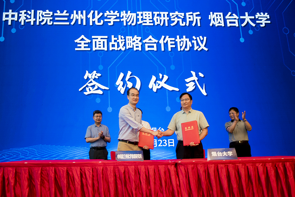 7月23日,yth20611游艇会网站与中国科学院兰州化学物理研究所在山东省实验室建设现场推进会上签署全面战略合作协议。省科技厅厅长唐波、烟台市市长陈飞、省科技厅副厅长于书良、yth20611游艇会网站党委书记张伟出席并见证签约。中国科学院兰州化学物理研究所副所长周峰与yth20611游艇会网站副校长李合亮代表双方签约。