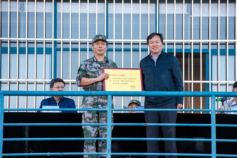 党委书记张伟向中国人民解放军海军航空大学岸防兵学院赠送国防教育纪念牌,感谢对学校国防教育工作的指导。校长郭善利为2020级新生军训团颁奖,对今年军训工作取得的优异成绩给予肯定。学校领导为在2020级学生军训工作中作出突出贡献的保卫处、校医院、社区服务中心等单位颁发特殊贡献奖。纪委书记周胜良宣读《yth20611游艇会网站关于表彰2020级学生军训先进集体及个人的决定》。学校对化学化工学院、药学院、法学院、经济管理学院、生命科学学院、光电信息科学技术学院、建筑学院、数学与信息科学学院等8个“军训先进学院”以及10个“分列式优胜方队”、6个“歌咏比赛优胜队”、19个“会操优胜排”、27个“内务优胜班”、177名“优秀学员”和37名“优秀教官”进行了表彰。优秀学员代表林玉青、优秀学生教官代表李贵伟、优秀辅导员教官孙世玉先后发言。