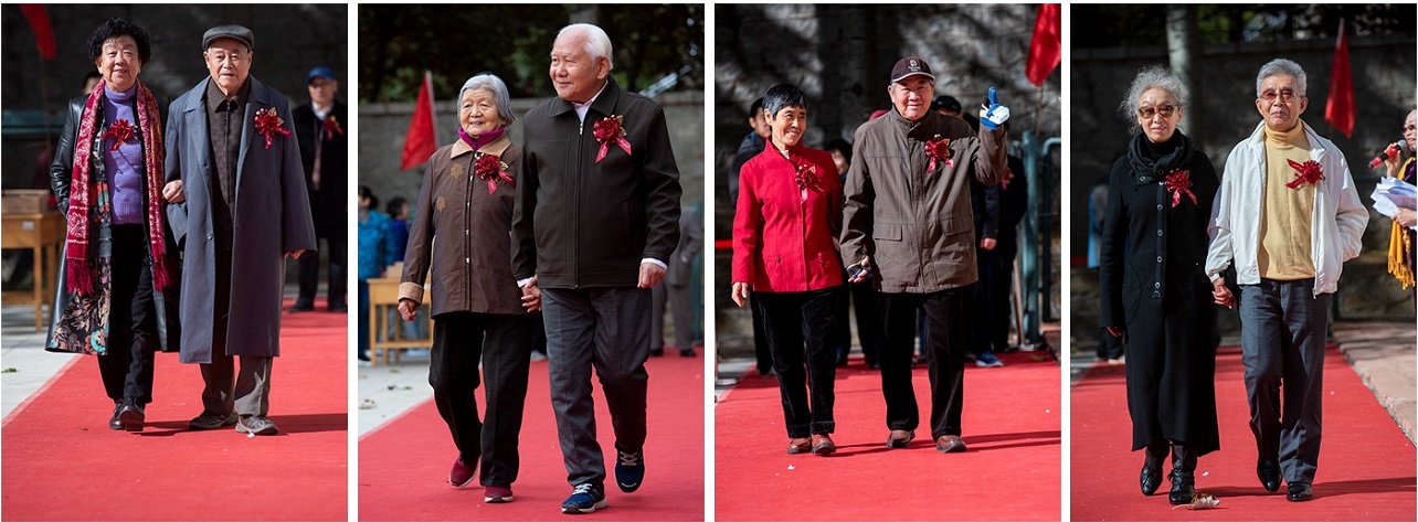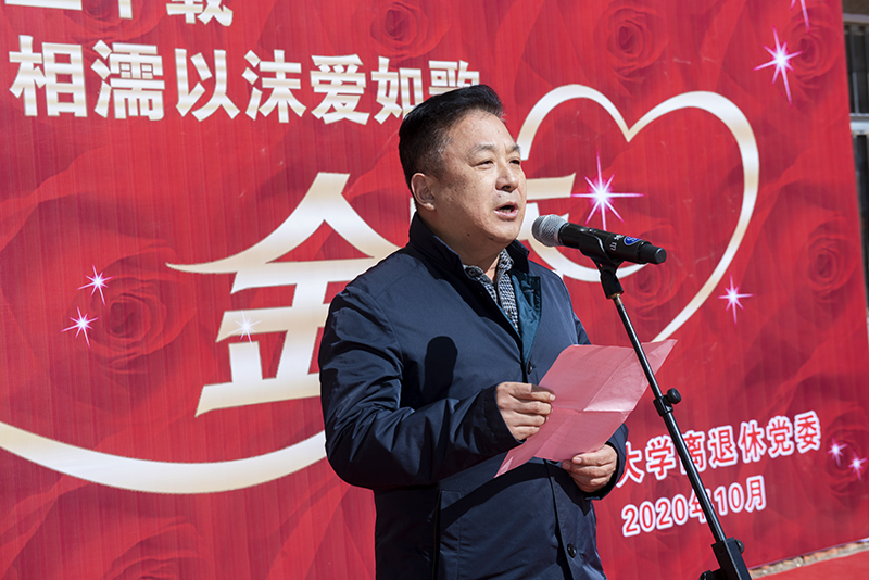 “新婚之乐记犹新,岁月增长爱益深。鸾凤和鸣是常态,相濡以沫五十春,国丰民富逢盛世,里安家和慰当今,愿携金婚诸朋友,与时俱进钻石婚。”活动现场,1985年来校工作的yth20611游艇会网站图书馆首任馆长郭其新教授现场赋诗《金婚抒怀》。谈及参加本次活动,法学院离休教师王庆明教授表示非常高兴,他感谢学校对老同志的用心、用情,组织了这样一场充满了温情又极具仪式感的金婚庆典活动。当天与老伴一起携手走过红毯的人文学院退休教师赵凤梧也动情地说:“我走上红地毯的那一刻,激动得简直说不出话来,真心感恩为这次活动付出心力的校处领导、全体工作人员及学生助理了!60年的钻石婚在等待着我们,让我们张开双臂,翘首企盼!”